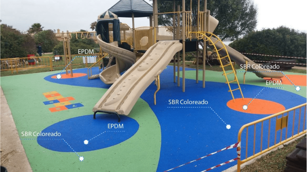 solución de pavimentación de alta calidad y seguridad para áreas de juego y espacios recreativos. Este piso de goma SBR (caucho) está diseñado para proporcionar una superficie segura y cómoda, absorbiendo un 45% del impacto generado por caídas, lo que es esencial para prevenir lesiones en espacios donde los niños juegan y se divierten.