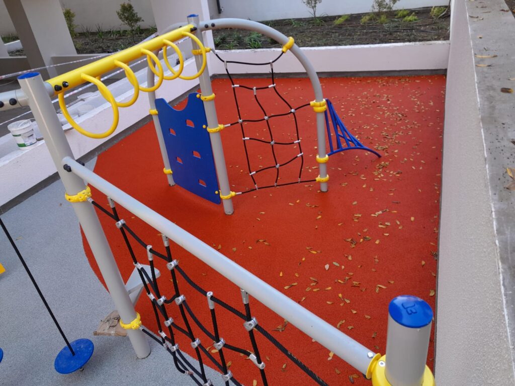 Primero, realizamos un análisis detallado del área para asegurarnos de que cada elemento se ubicara estratégicamente, promoviendo un flujo de juego natural y seguro. Instalamos columpios, toboganes y áreas de escalada, todos fabricados con materiales duraderos y resistentes a las inclemencias del tiempo.